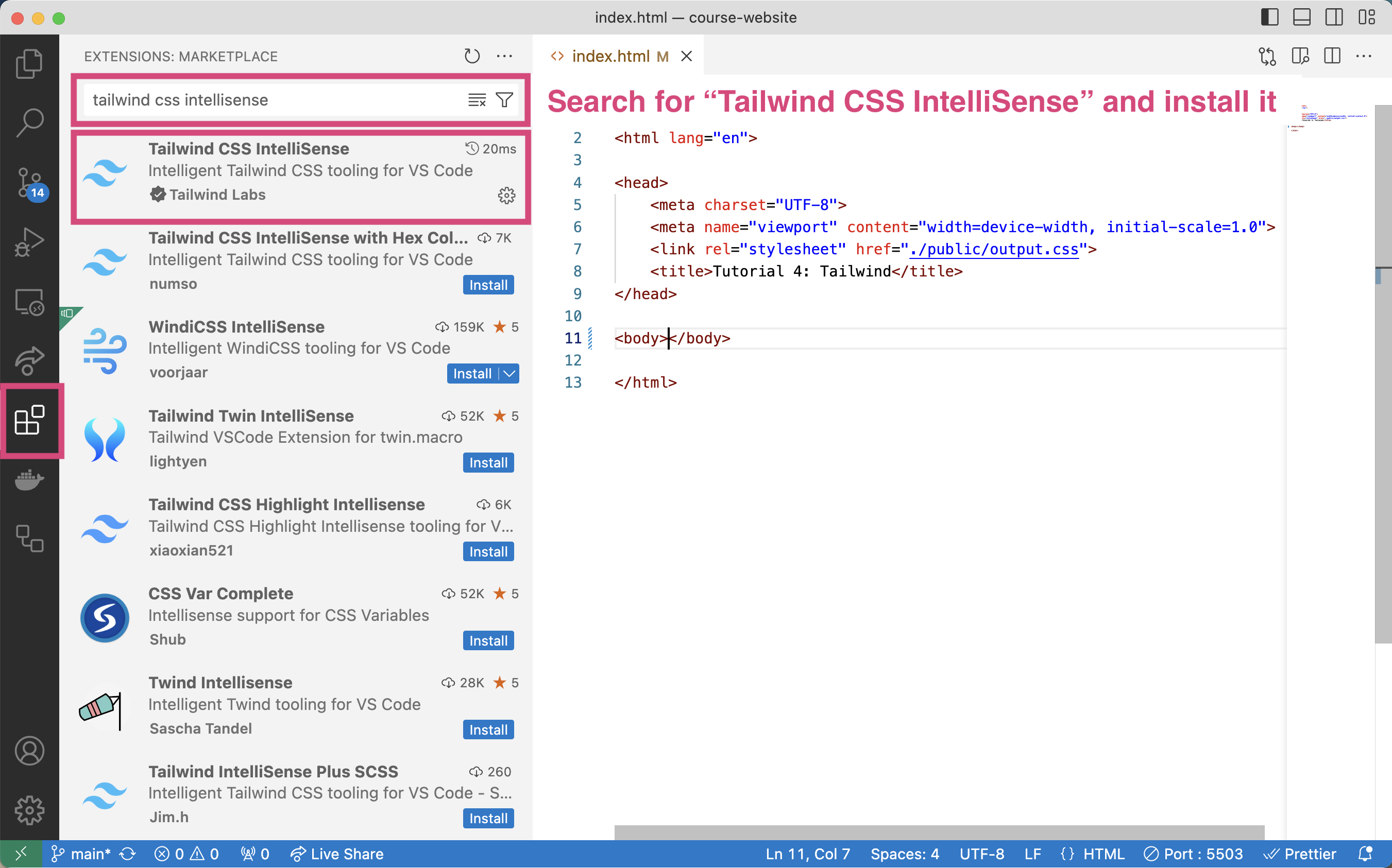 5. Install Tailwind CSS IntelliSense