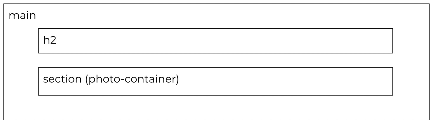 maintag, create two children:- An h2 tag with the text of “Photo Gallery”
